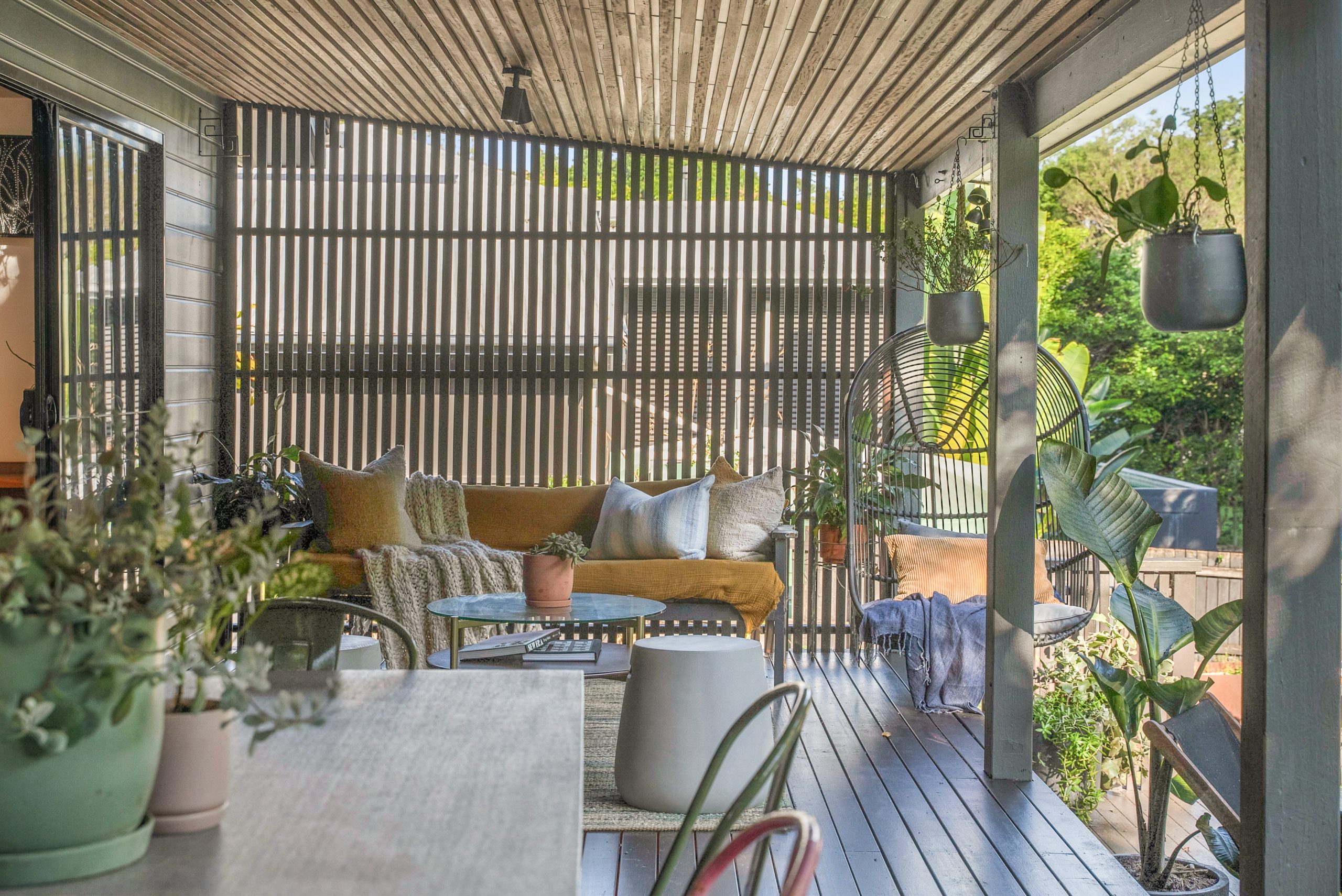 The block size is 1491m2, and there is room for an additional cabin/studio in the private front garden, which shows off thoughtful architectural landscaping, with easy care native flora for serenity and low maintenance.